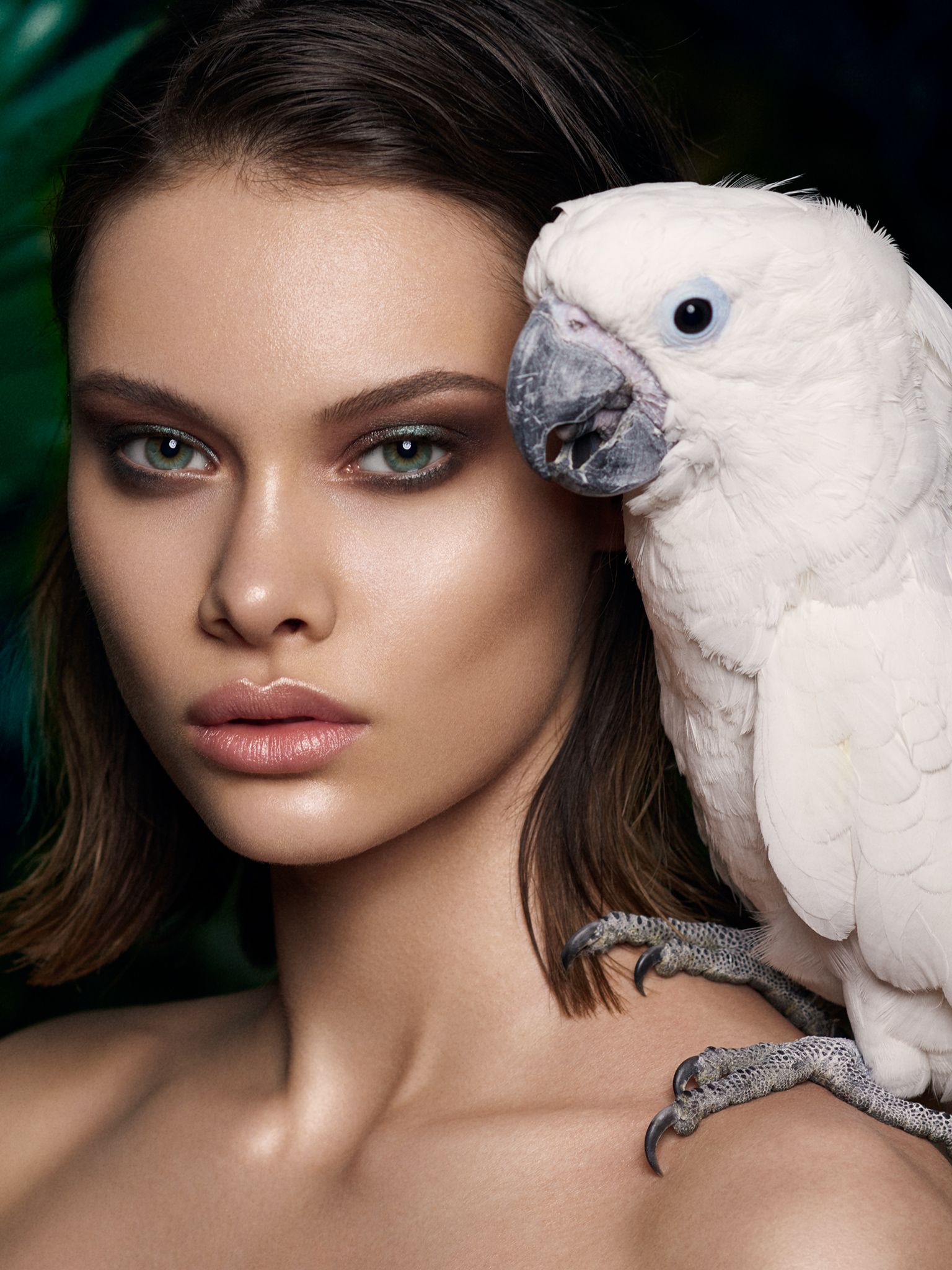 Instead of traveling to the jungle, I decided to bring the jungle into the studio. So my Team and I bought many different plants and flowers to bring our vision to life. We also got a cockatoo in the studio which was interacting with our model.