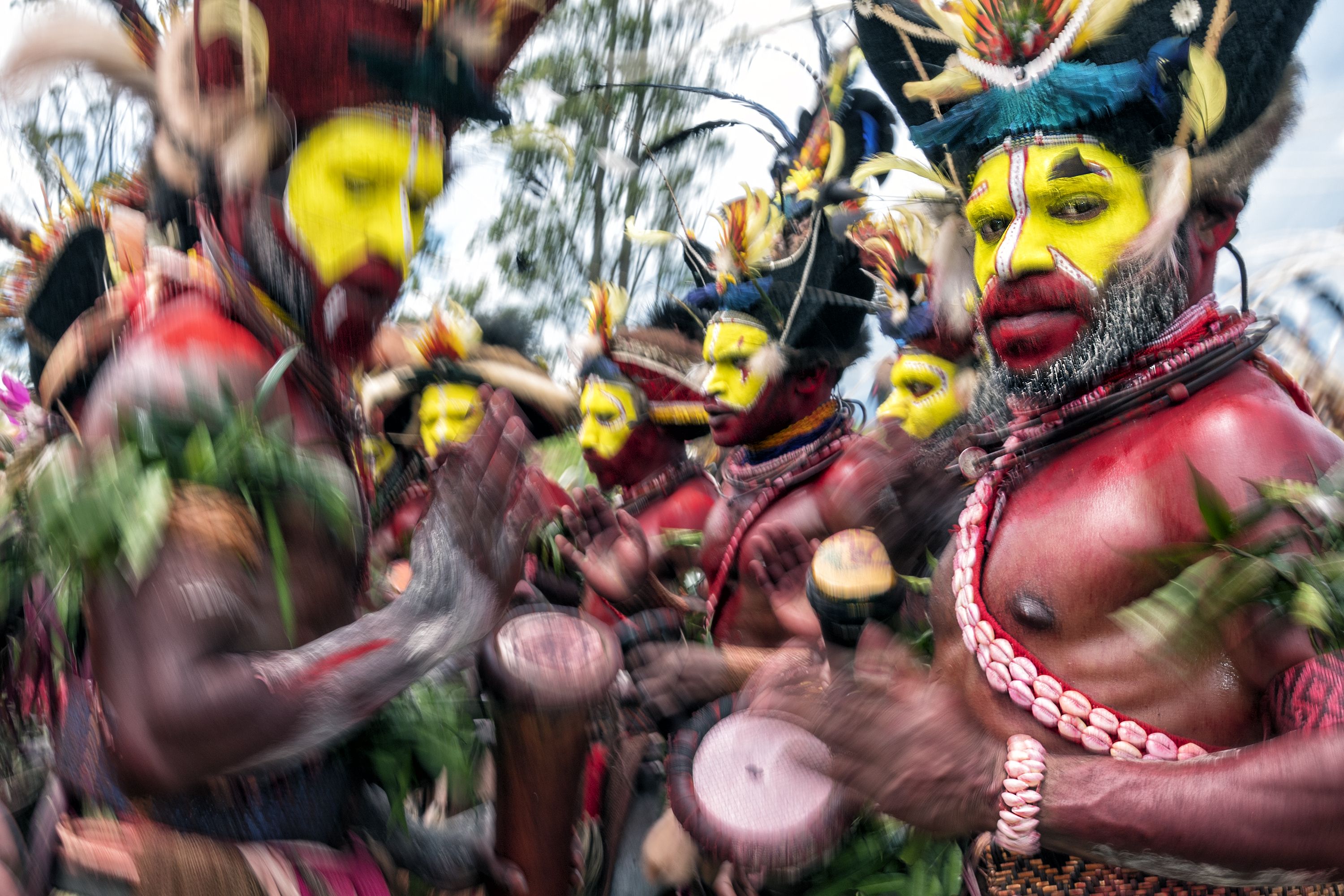 The Huli Wigmen is one of the major attraction during the Sing-Sing show of Mt Hagen Festival. They beating the Kundu Drum, and Dance. The majestic and powerful rhythm created by them are hard being capture in image.