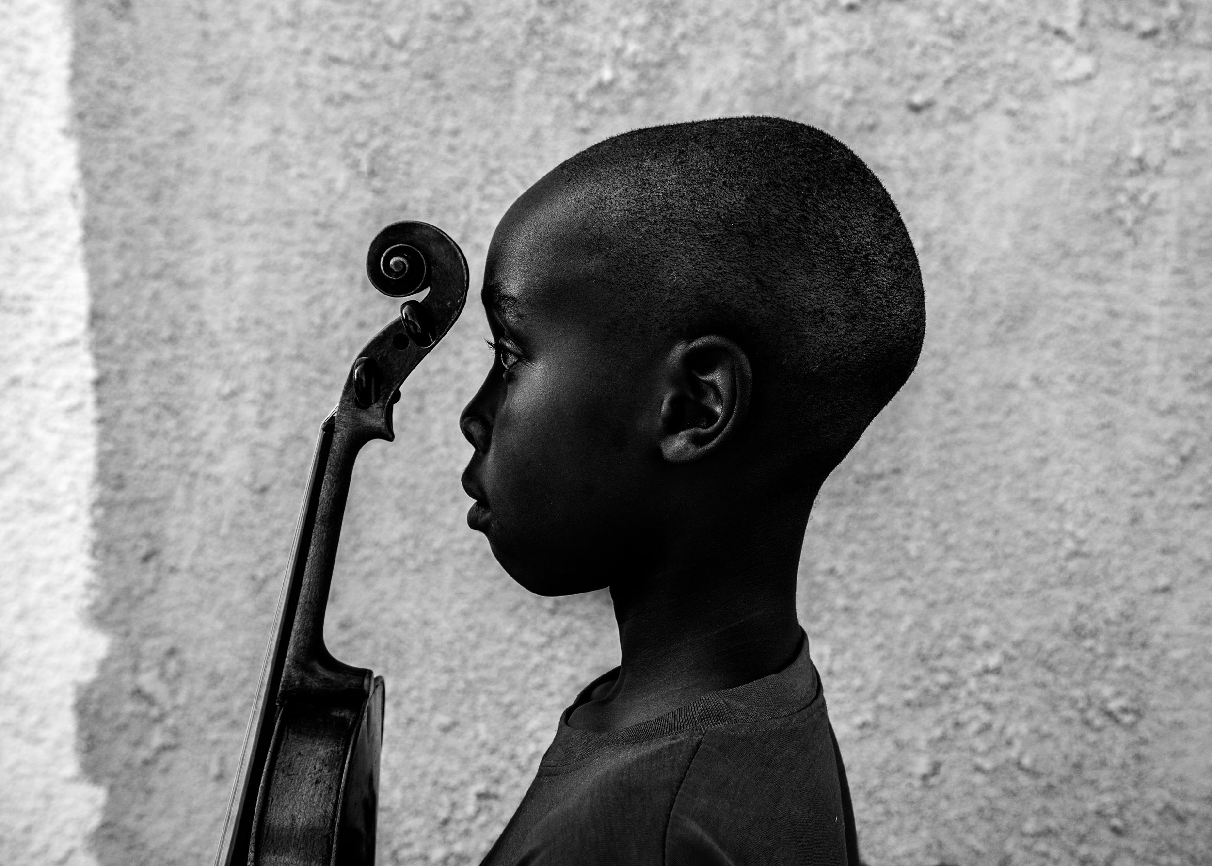 This photograph was taken at a music school in the township of Soweto in South Africa. The school is a charity that teaches children, often from disadvantaged backgrounds, to play classical musical instruments. For this image I to sought to show the harmony that existed between the enthusiastic player and his instrument.