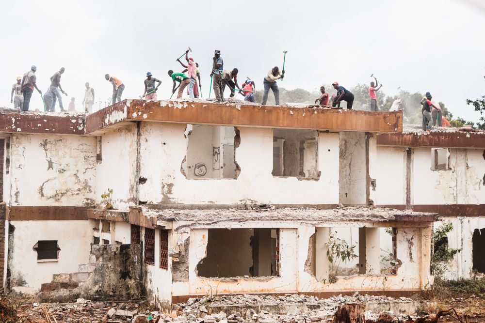 Workers demolish this house using only handtools in just a couple of days to make way for the new bypass, Nairobi, Kenya