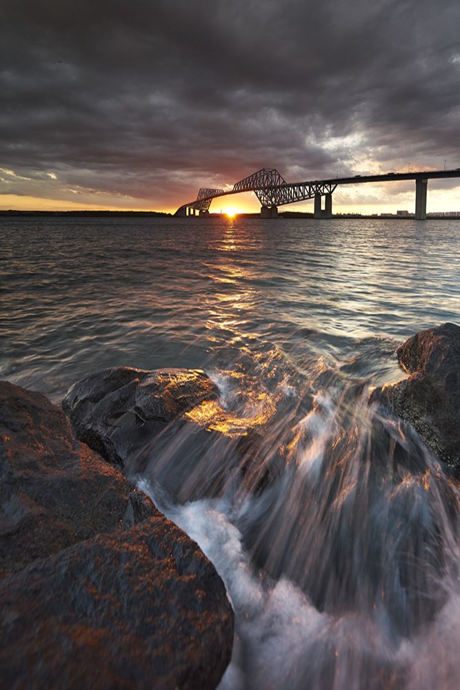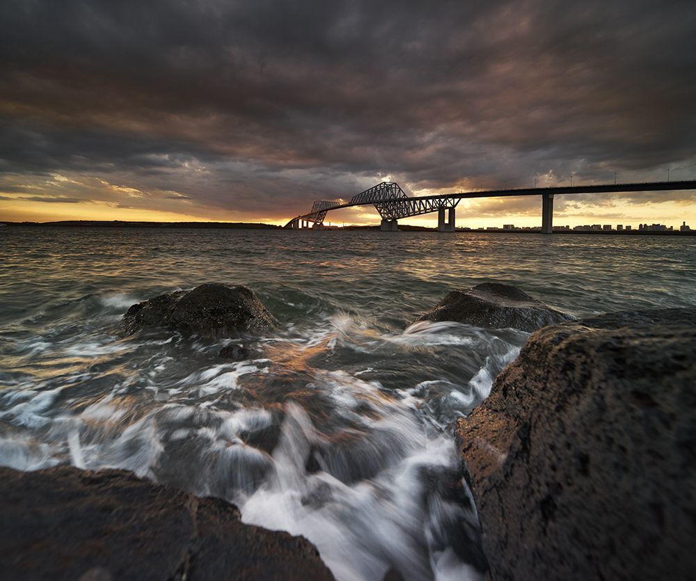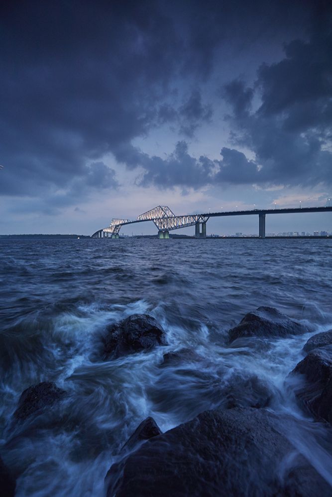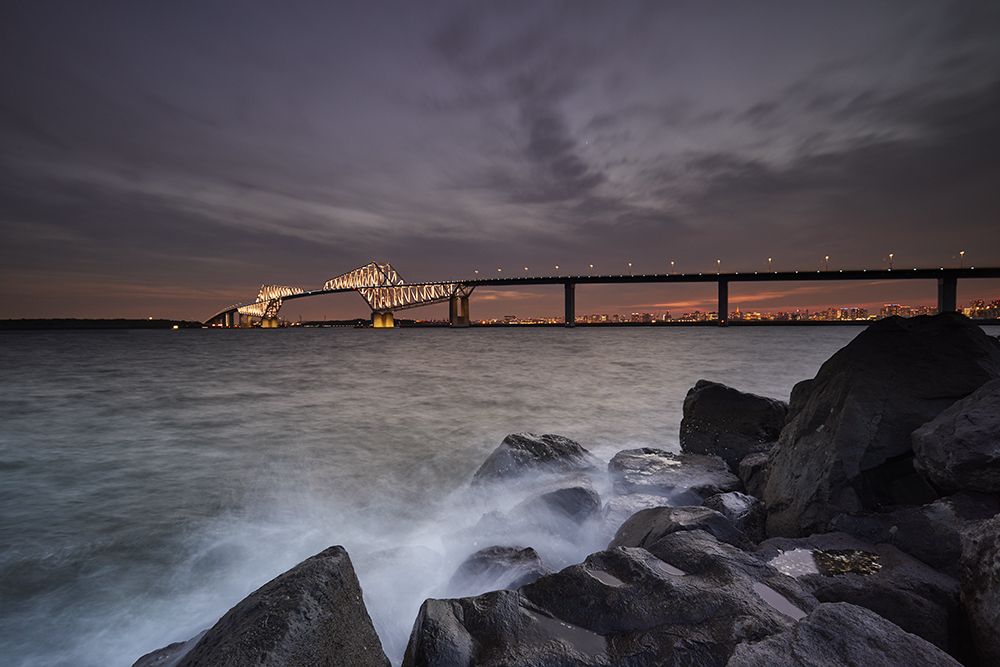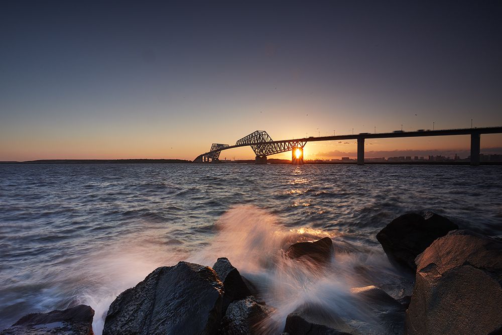 It looks like a dinosaur shape, Tokyo Gate Bridge It is on the outermost side of Tokyo Bay and protects the city of Tokyo from the rough sea. It is this bridge that attracts people by light-up changing around seasons, Mt. Fuji which is shown on sunny days in winter, and beautiful sunset.