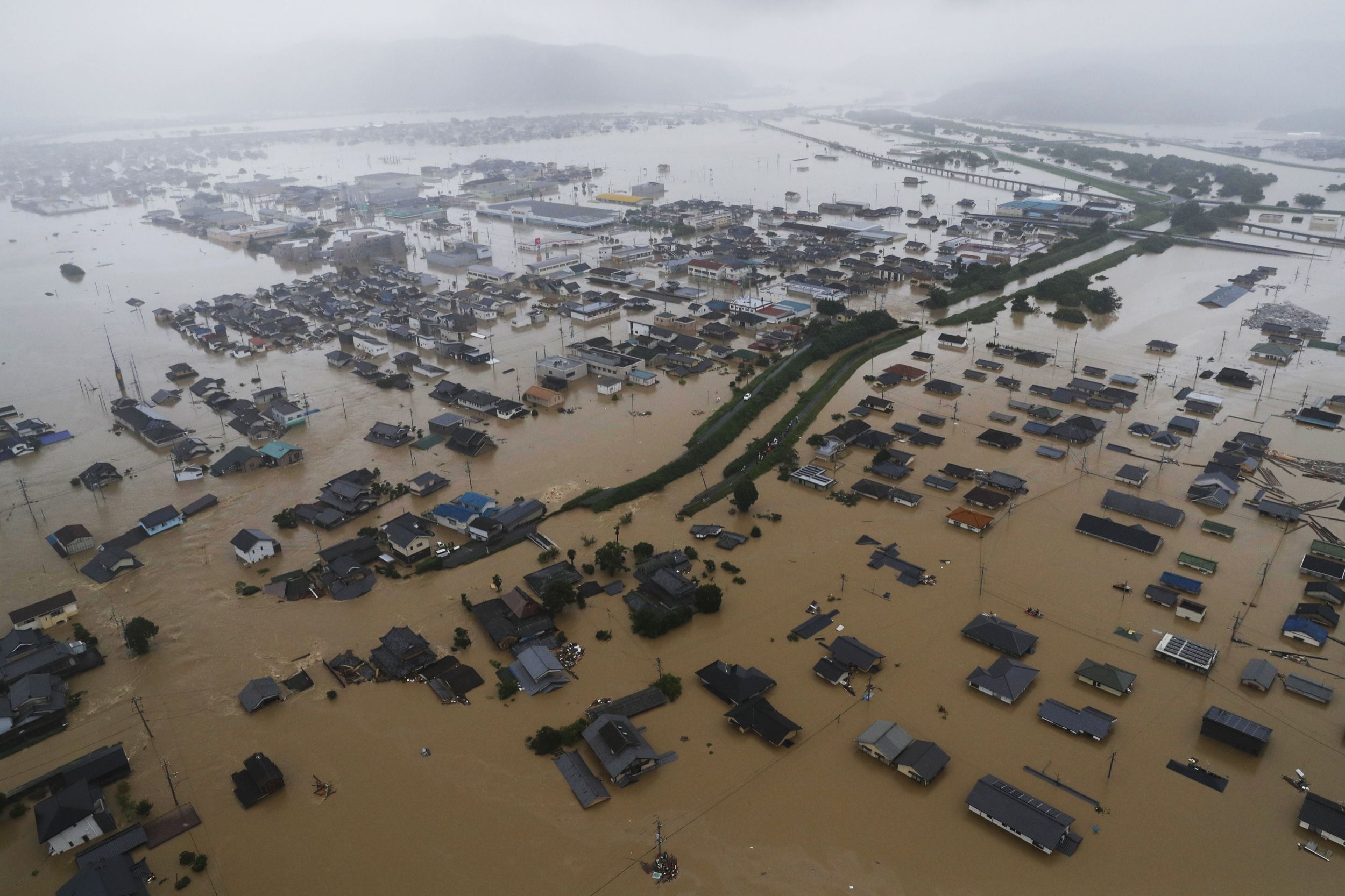Torrential rains hit a wide area of western Japan and caused massive flooding and landslides in July 2018. The worst rain disaster in decades has killed more than 200 in 15 prefectures. In Okayama Prefecture, one of the hardest-hit areas, more than 1,000 people were temporarily trapped on the roofs of buildings submerged by floods. Most of them were rescued by boats or helicopters.