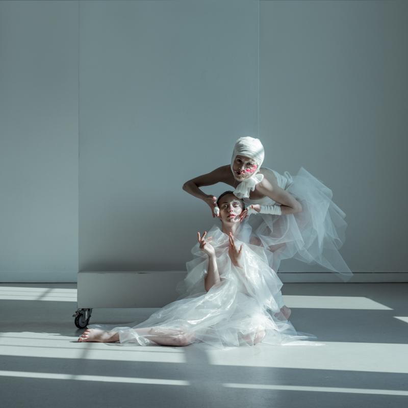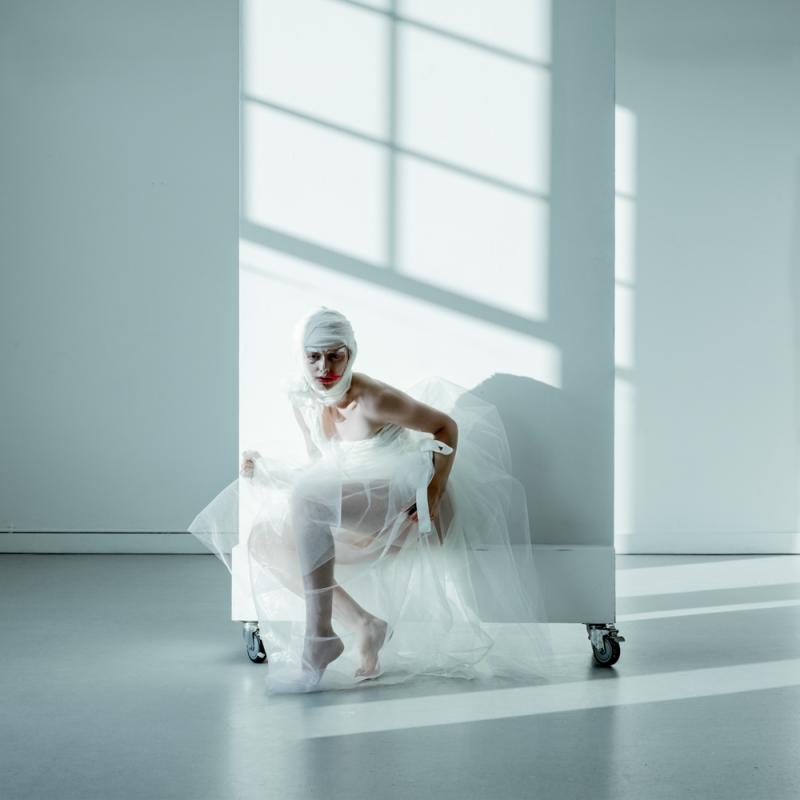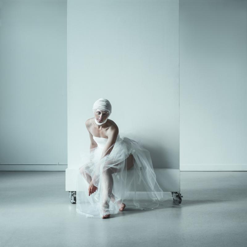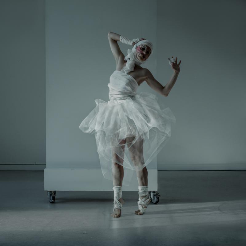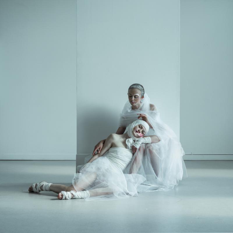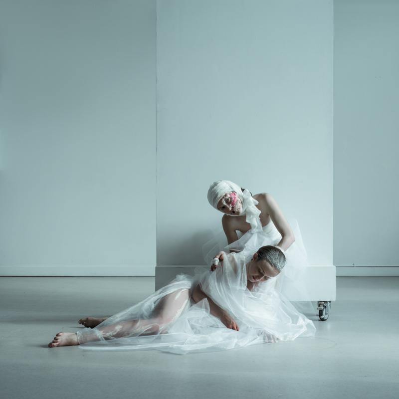Story 1: A girl, let’s call her Lily, pale, angelic is taking care of another girl, let’s call her Lilith, wounded, wrapped in bandage. A time goes by, Lily and Lilith grow more intimate, and eventually the wounded Lilith takes the dominant role, and our angelic Lily is now being taken care of. Story 2: A girl, Lily, is pale and angelic. However, as the story unfolds, she slowly changes, her skin starts peeling off; her face changes, it’s hard to say if she is beaten, or just putting on crazy makeup. Eventually she starts to wrap bandage on her due to her injury, and she becomes Lilith. Now, as you may have guessed or noticed from the mirrored images, Lily and Lilith are really the same person. We human have developed our defense mechanism as we struggle with trauma, or let’s just call it unpleasant experience so as to lighten the mood. A lot of the time when we talk about our not-so-good past, we keep an expression-less face, as if we are talking about someone else, for it’s the only way that we do not drag ourselves back into past dark mood. We each appear to be Lily on the outside, but deep inside everyone there is a Lilith who stays dormant but can wake up anytime. The injury in the two stories are merely metamorphic to the real negative psychology impacts that the society bombard at us. Published in Dark Beauty Magazine MUA: Emily Fung Wardrobe: Sarah Penwarden Model: Kathryn McIntosh, Selene Lee