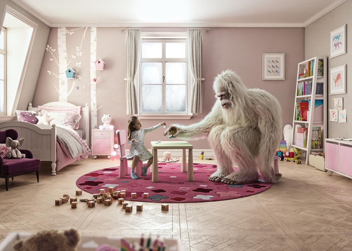 With the approach of winter, Regione Lazio, an Italian regional institution, invites elderly and children to get a vaccination against flu and seasonal ills. Here the dreaded yeti becomes the docile playmate of a child, and the ferocious white bear sits in an armchair to keep company to an old lady. Winter is not scary anymore with flu vaccine. Print advertisement shot by Davide Bellocchio, created by Superhumans, Italy for Regione Lazio. Caption "Winter is not scary anymore, with flu vaccine. Get the vaccination, you’ll reduce the risk of complications and serious diseases" Credits Advertising Agency: Superhumans, Rome, Italy Creative Directors: Luca Albanese, Francesco Taddeucci Art Director: Federico Angelieri Copywriter: Barbara Bigi Photographer / Post-Production: Davide Bellocchio CGI: Struttura Leggera