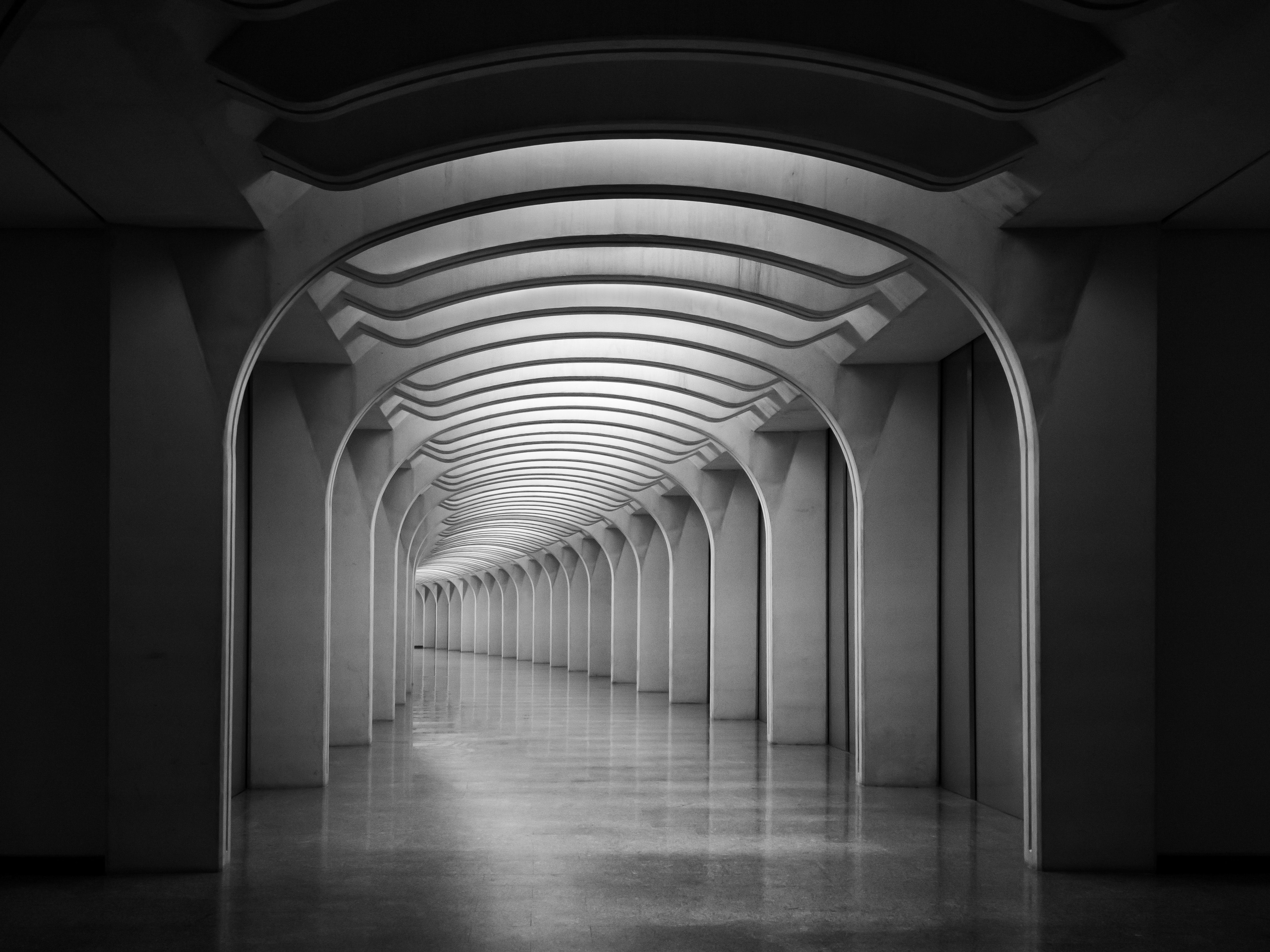 The wonderful interior walkway beneath the Palau de les Arts Reina Sofia Opera House, Valencia.