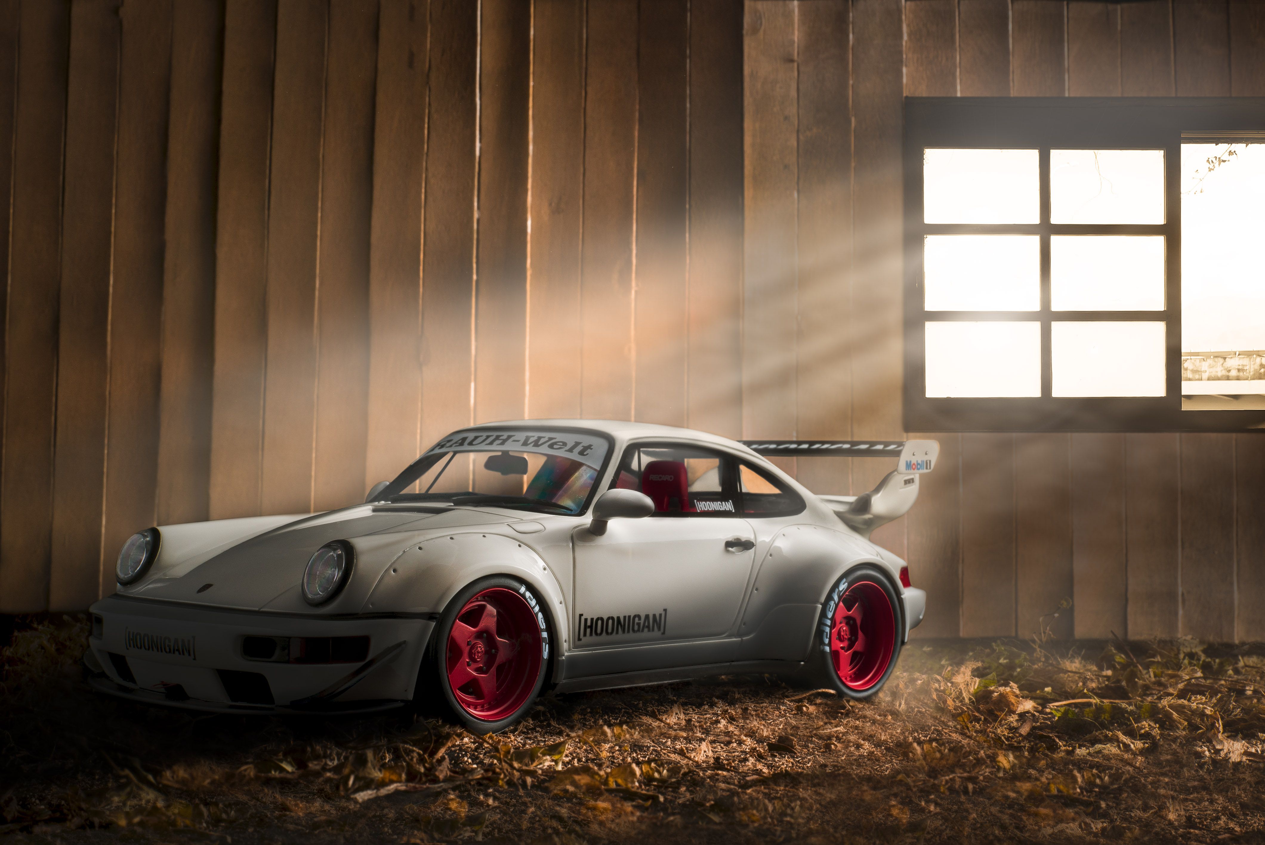 An old wooden house, an old Porsche