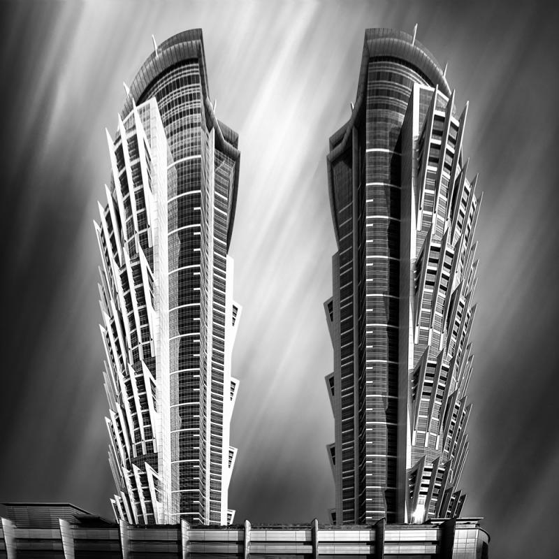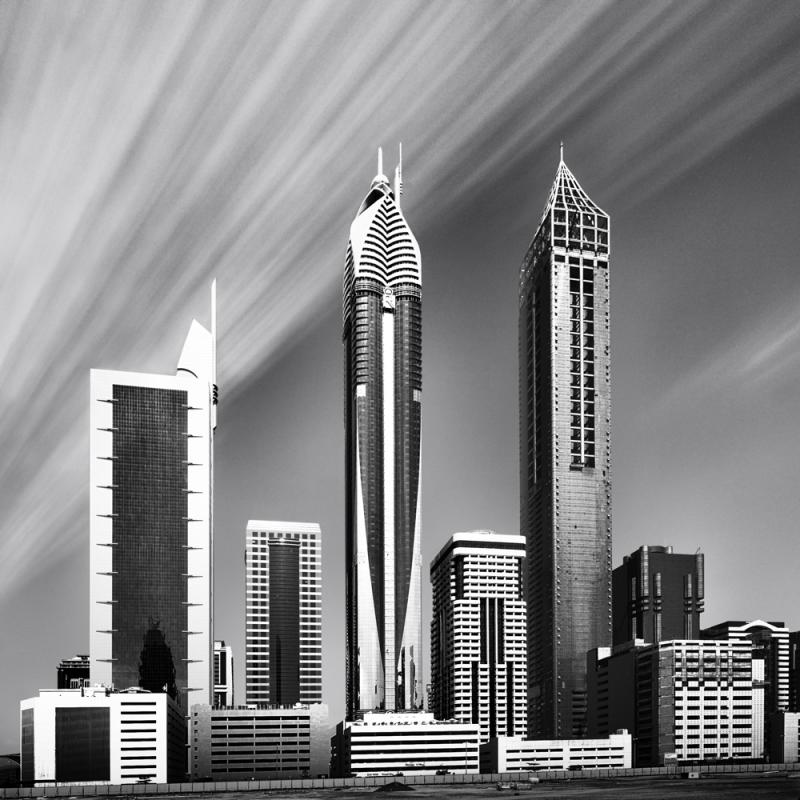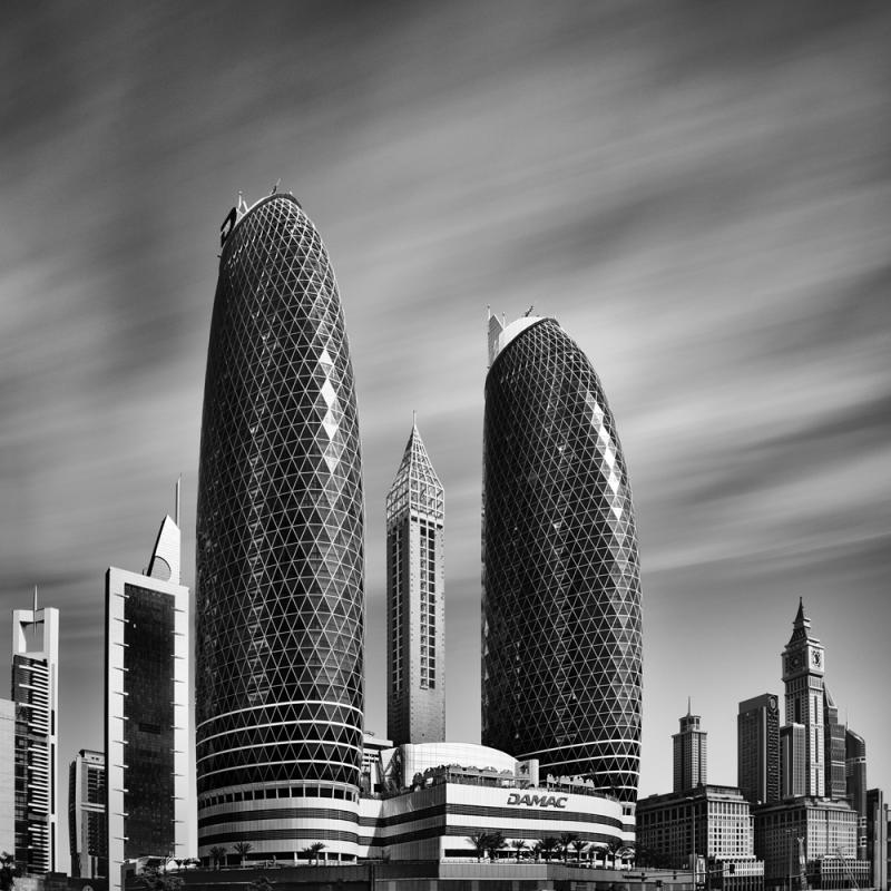 Dubai is a vision risen from the sand. Architects created adventurous designs that command the space around them; the surrounding desert has no opinion. I show in this series the urban environment of Dubai and pairs of buildings that complement each other and/or their neighborhood space. Long exposures perceive the passage of time and the tacit agreement that all one day may return to the sand.