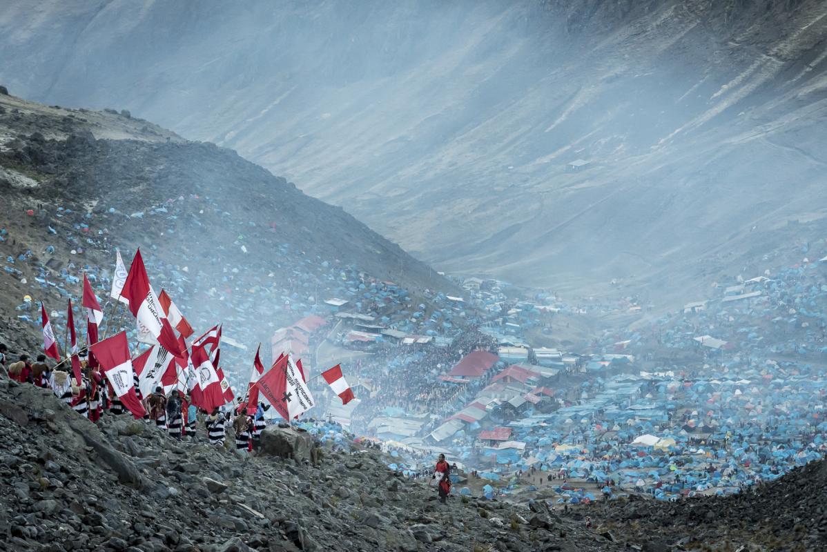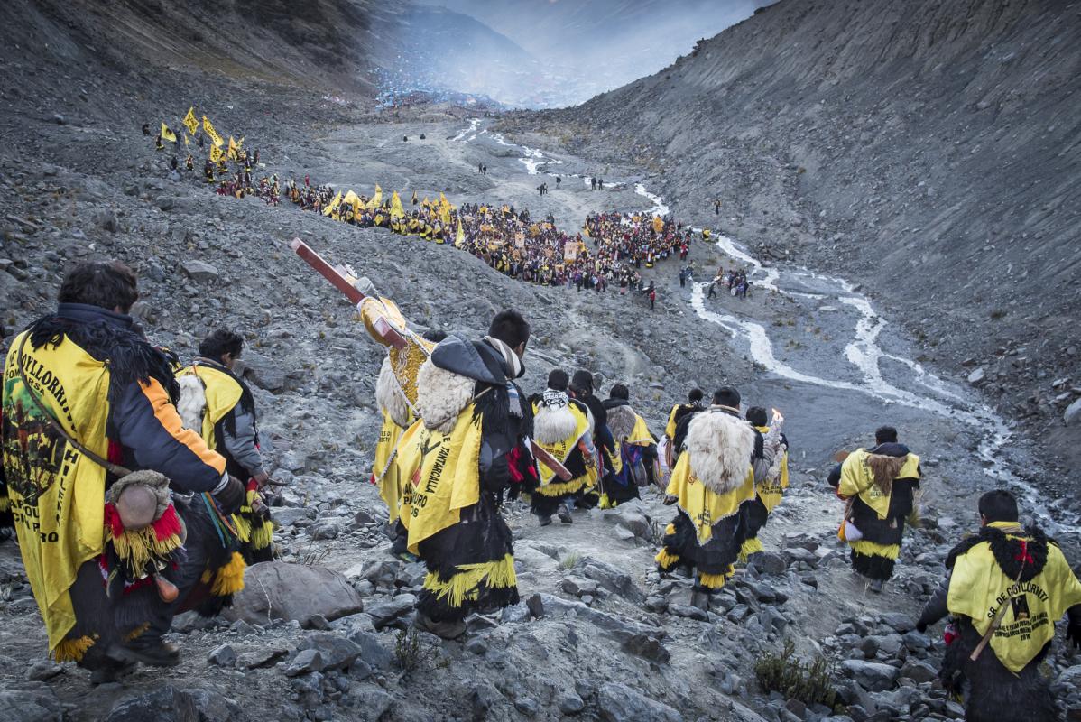 High in the Andes at an altitude of over 5000meters a band of 'Ukukus' celebrate the festival of Qoyllur Rit'i which is a Quechua word for Shining Snow. Following a mixture of Catholic and Inca rituals, thousands of pilgrims ascend up to the holy glaciers carrying large crosses where they perform initiation ceremonies before descending again at dawn. These images form part of a long term project 'Devotion' that explores different faith traditions around the world, encompassing Tibet, India, Iran, Ethiopia, Indonesia, the North Caucasus and Peru.