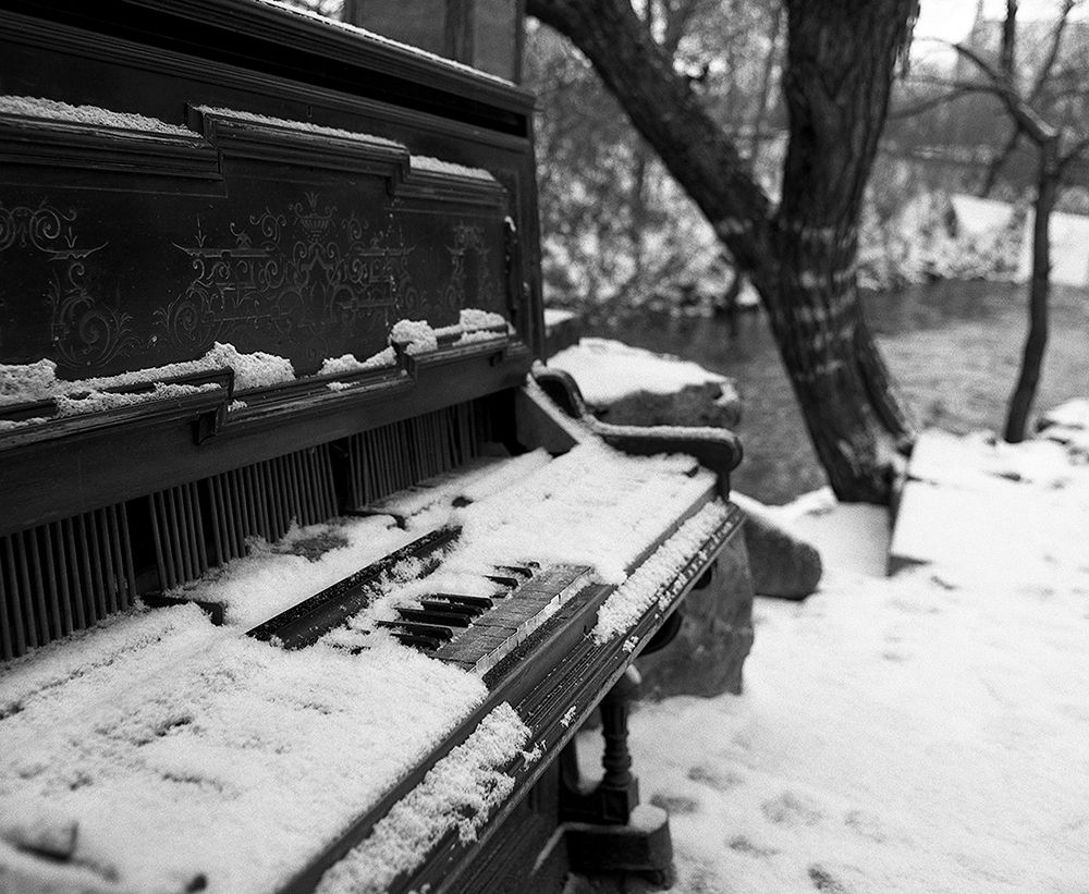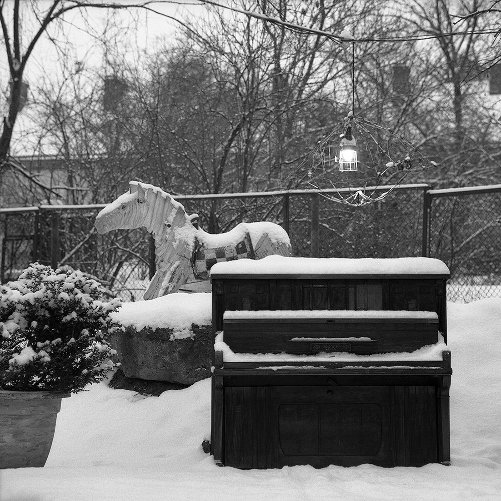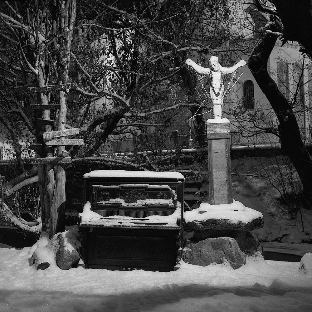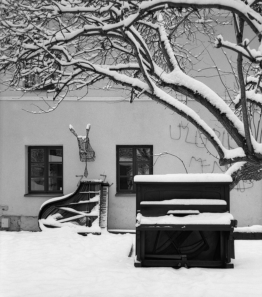 Distant faint sound of footsteps in the snow, river purling over it’s frozen banks and yet the silence of lonesome standing becomes overwhelming. Lingering over faded memories they are playing their last song, last requiem. Come and listen. An art piece by Samvel Gandzumian of old, no longer in use pianos. Installation in “Uzupio Inkubatorius" open art gallery, Vilnius. Pictures taken using Arca swiss, Bronica, Hasselblad cameras on Ilford b&w film.