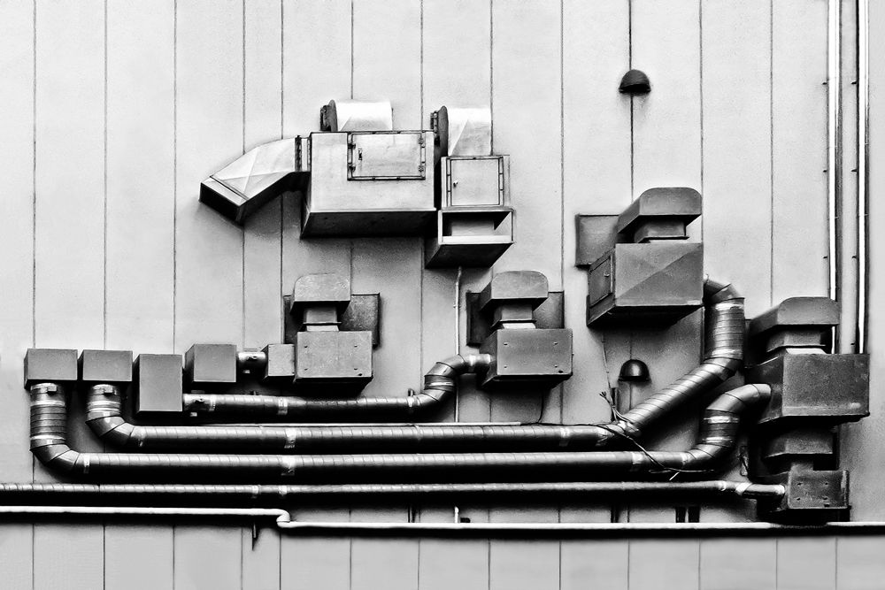The lines, angles and shapes of this HVAC system created an interesting design. This was mounted on the side of a building in Okinawa, Japan.