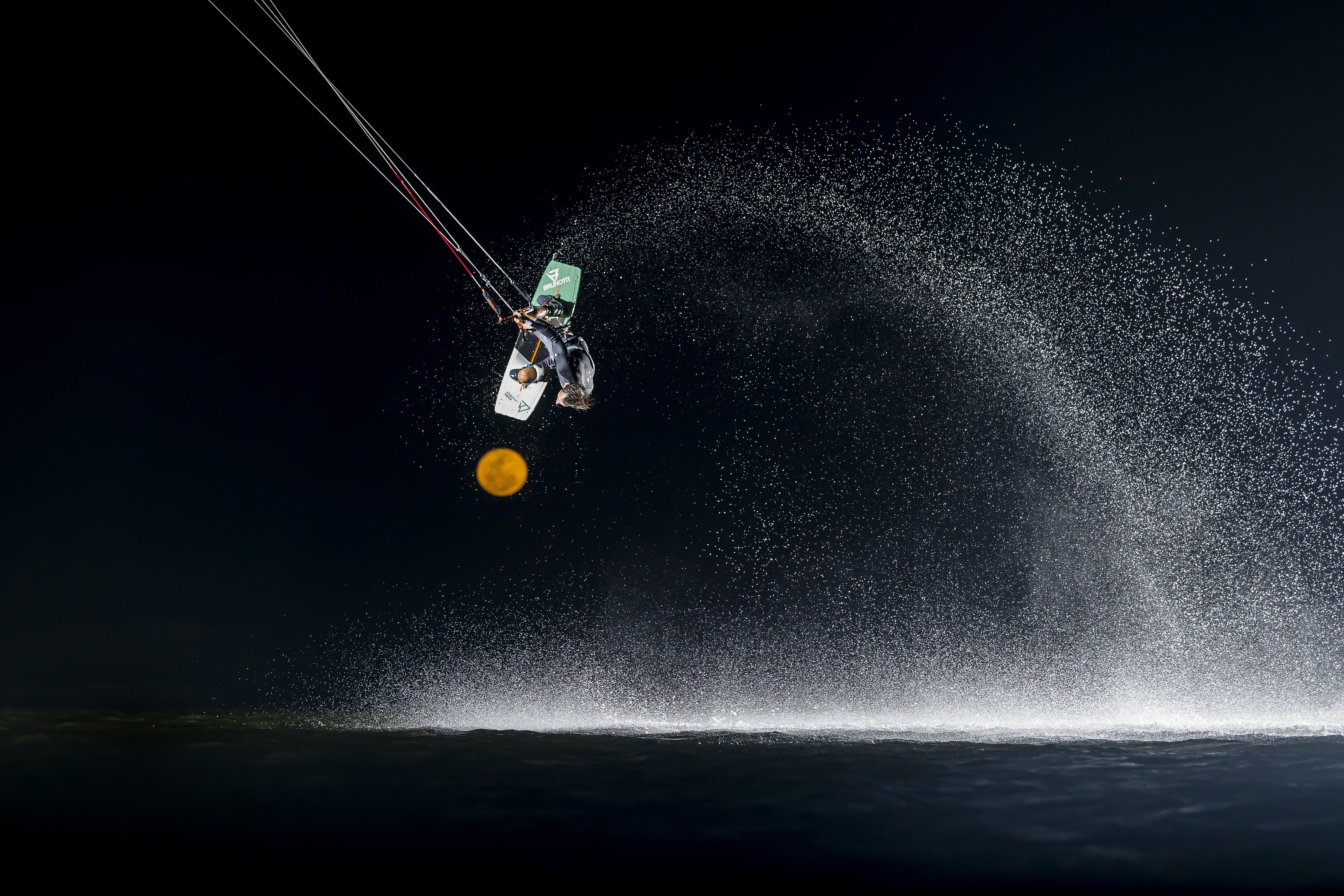 This series shows my results after experimenting with shooting kiteboarding with powerful studio lights. One of the main challenges was to be able to place the lights where I needed. That took me to the unconventional solution of putting my lights on swimming pool floats so they could go where I needed in the lagoon. I was lucky enough to get some of the best athletes in the world involved. Which definitely made my life easier since these guys and girls can be so precise.