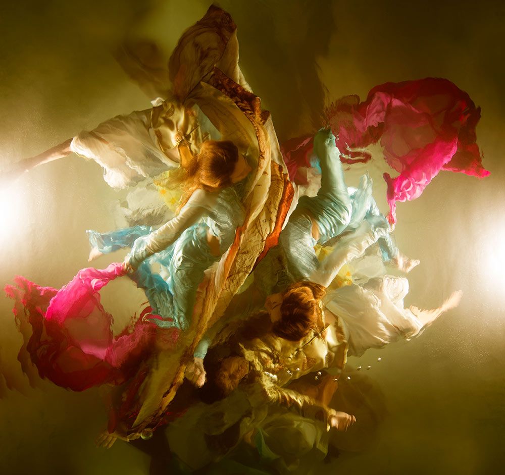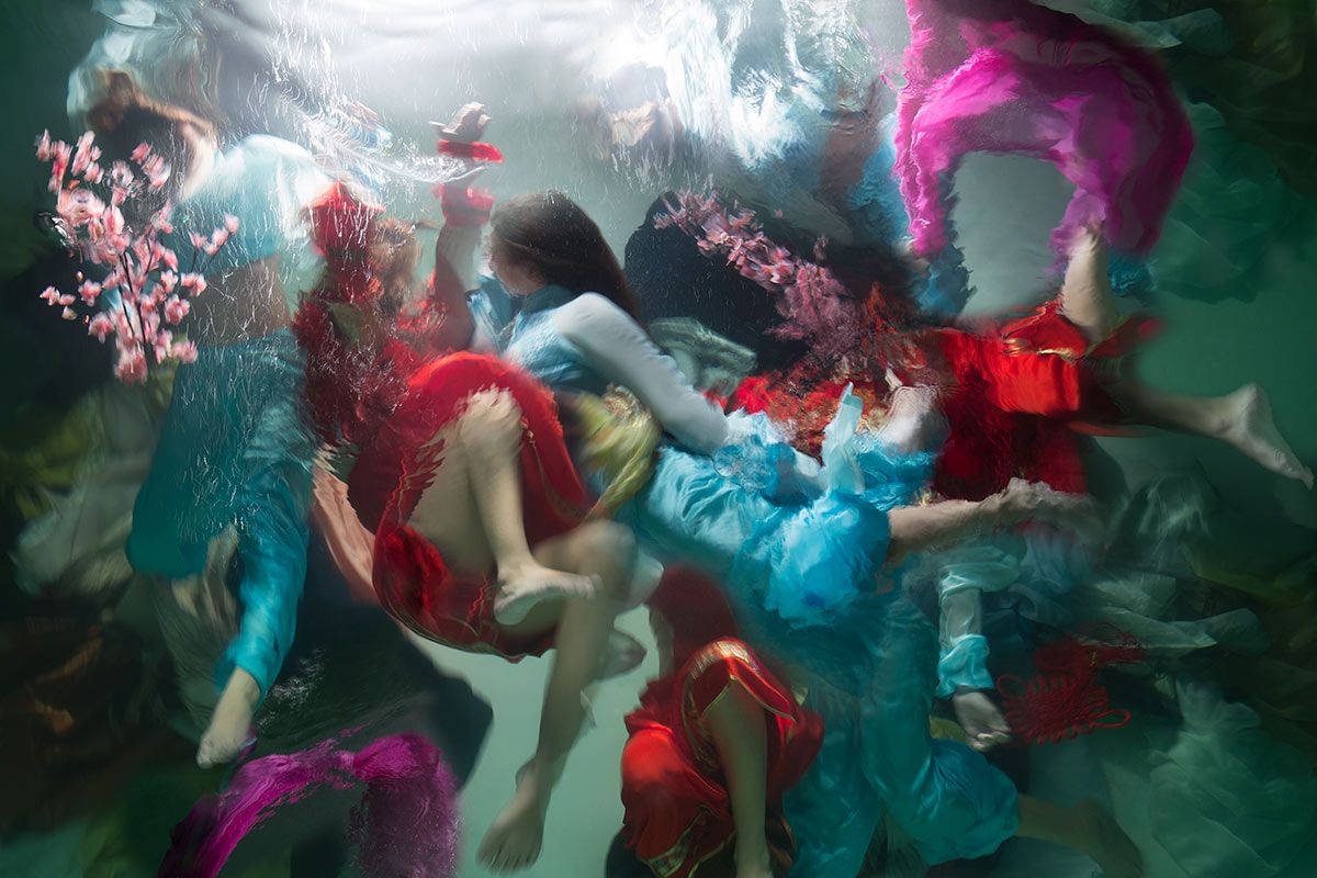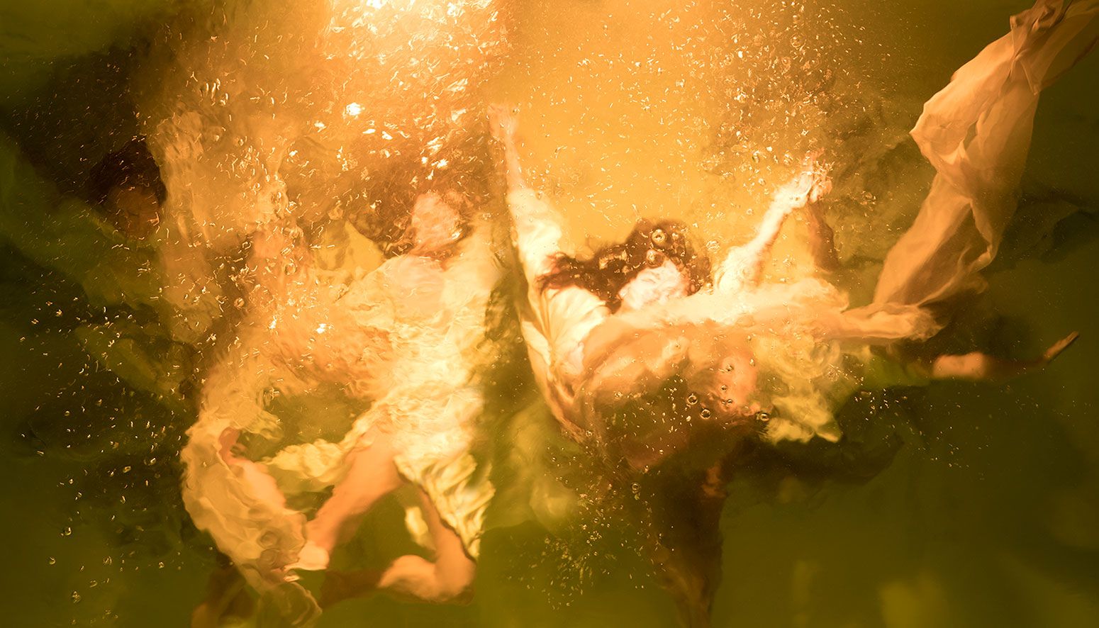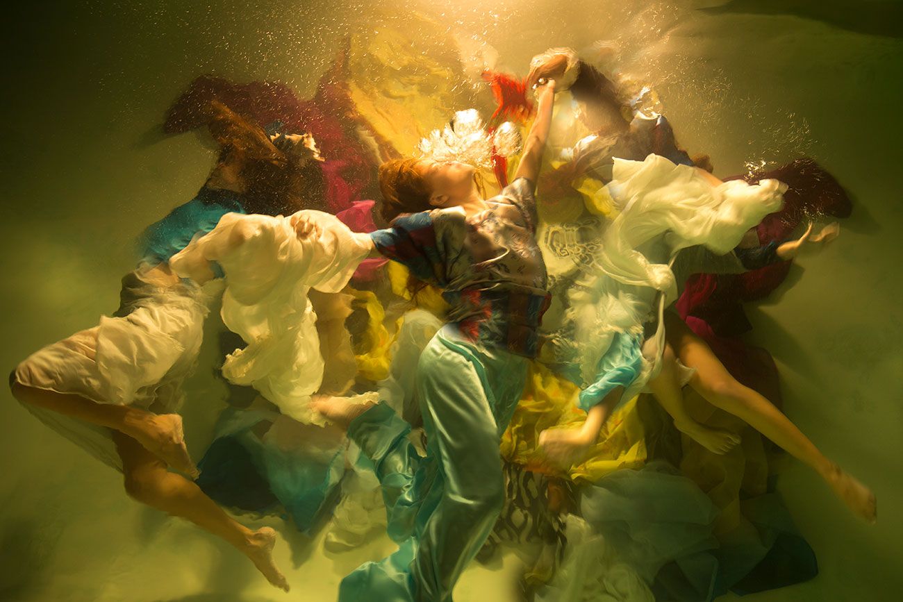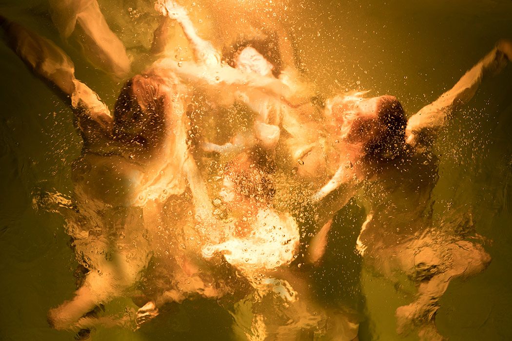 The narrative in Rogers’ new waterscapes, titled "Muses", continues to follow the thread of her most celebrated collections, with a process that allows her and her subjects to experience firsthand the vulnerabilities and beauty of the human condition in an underwater setting. The colors and cascading bodies take on late Renaissance and Baroque tones, with chiaroscuro contrasts of light and darkness creating movement and purpose within each scene. For over fifteen years, Rogers has experimented with water in her artistic endeavors.