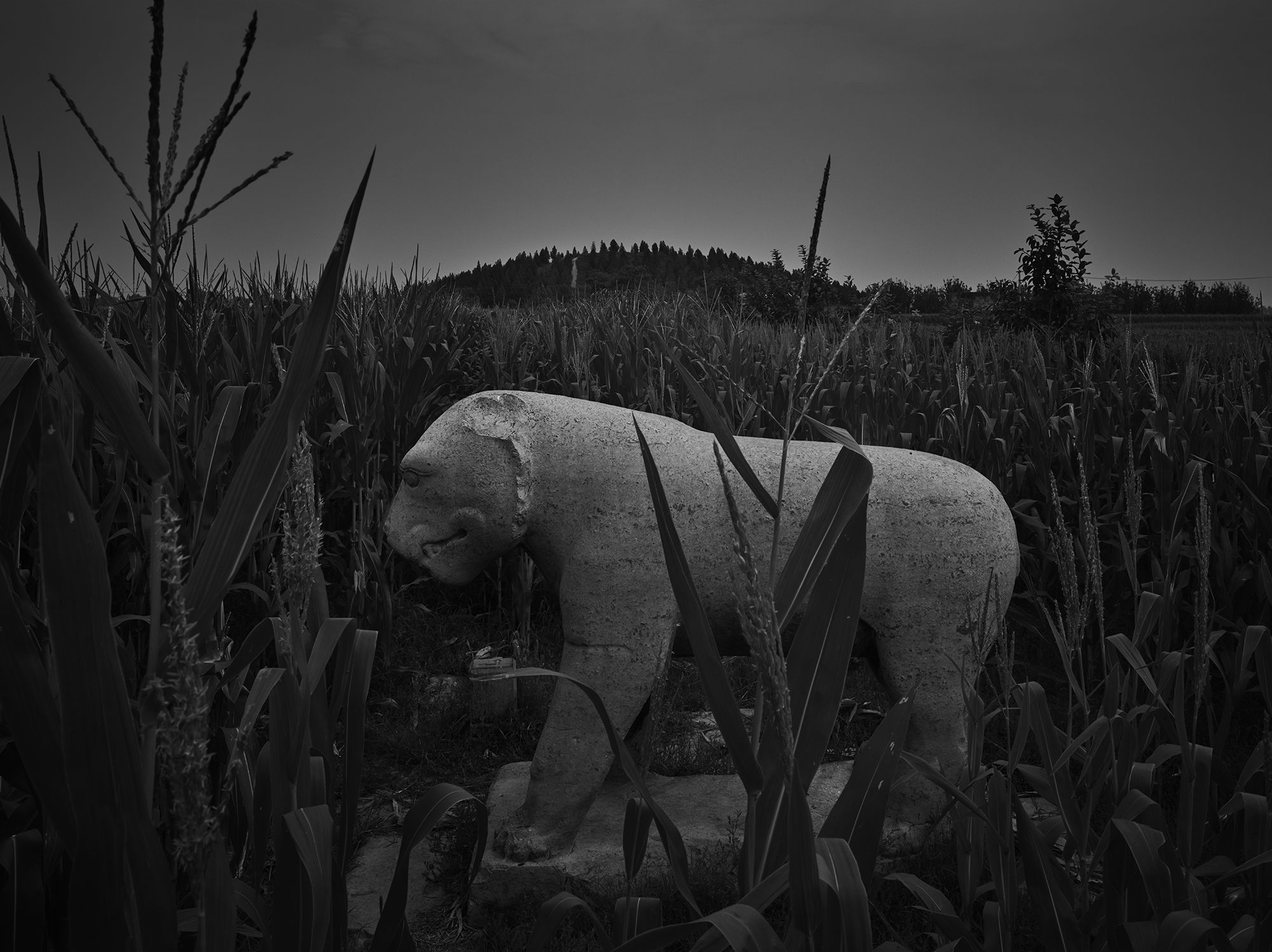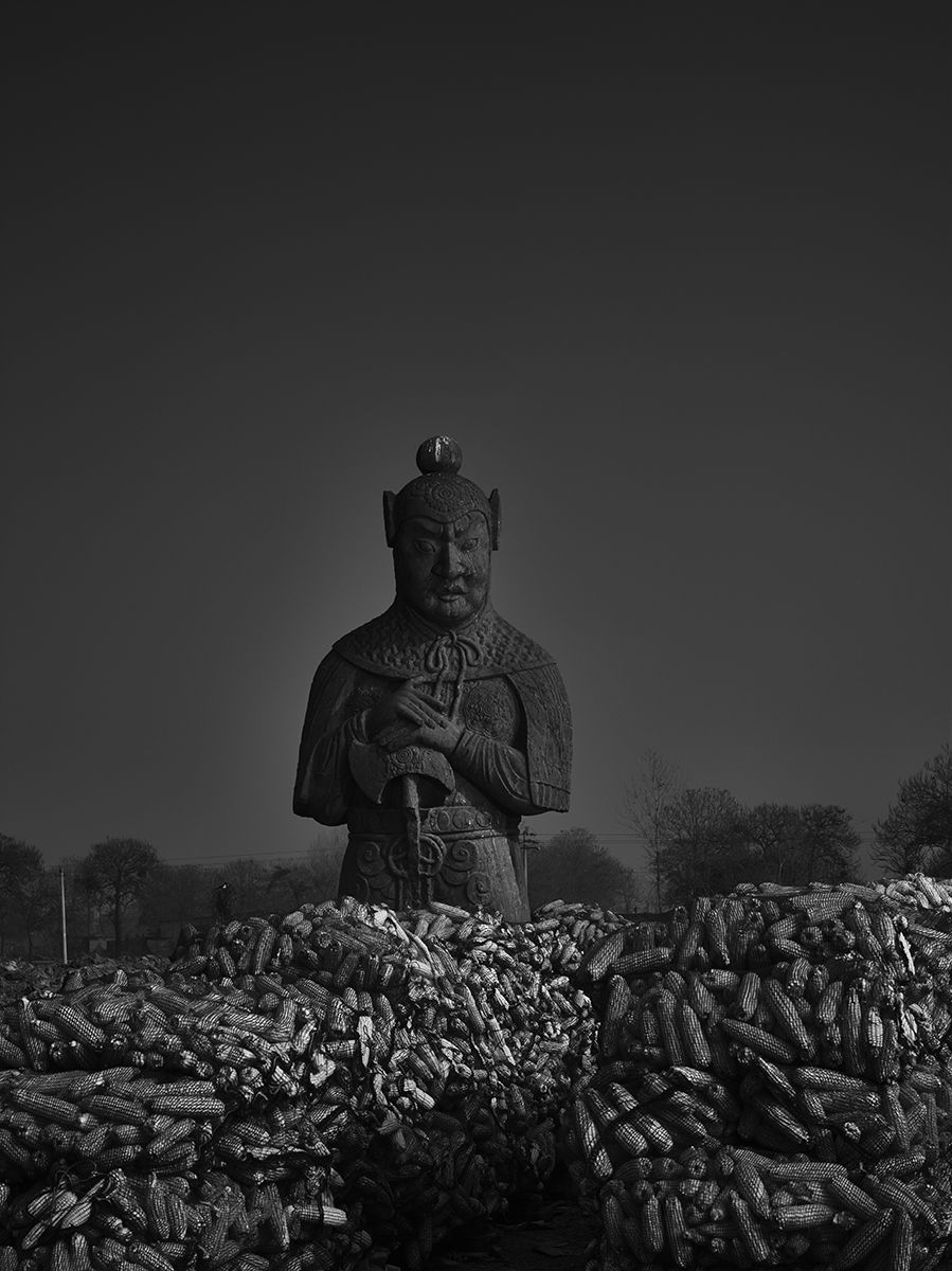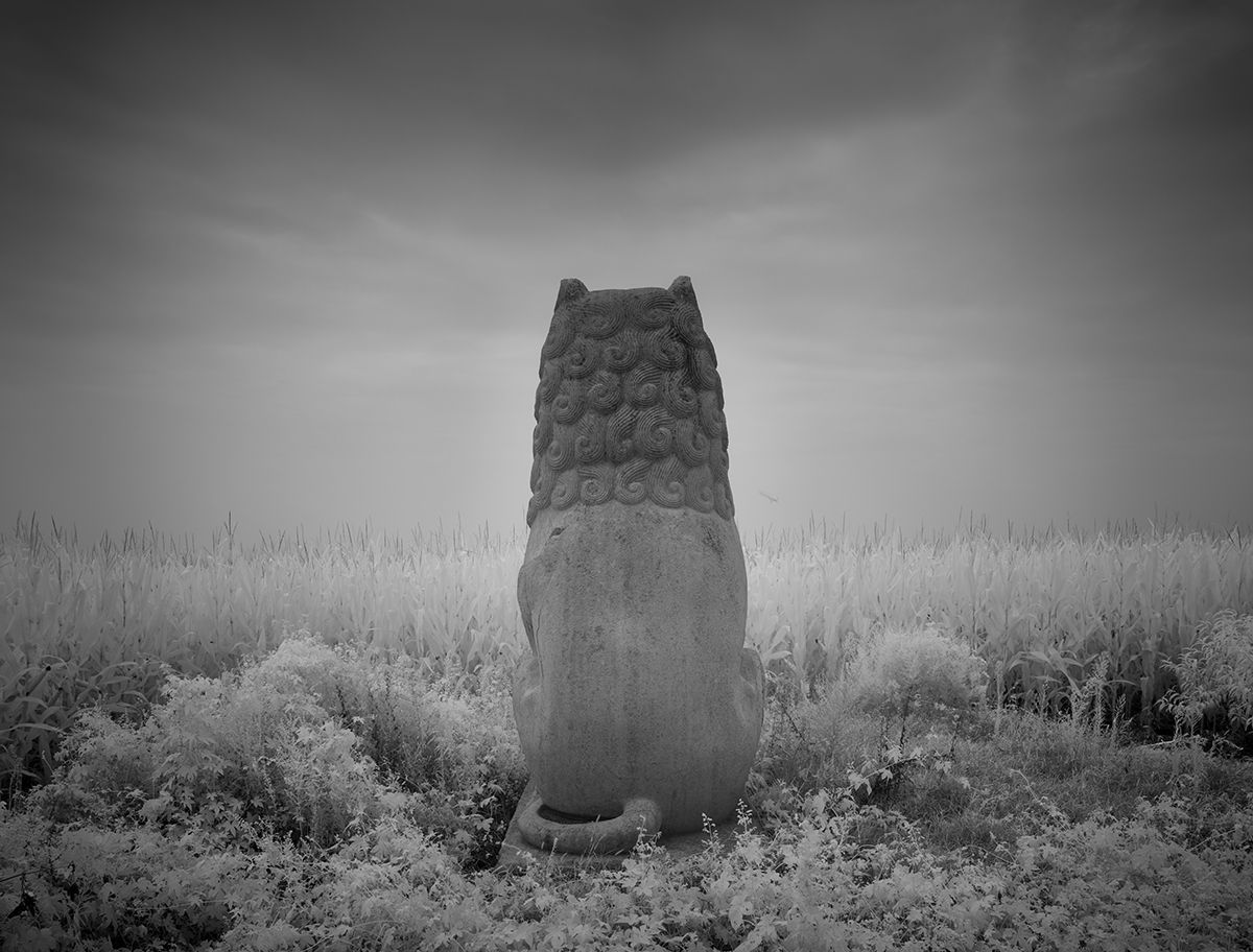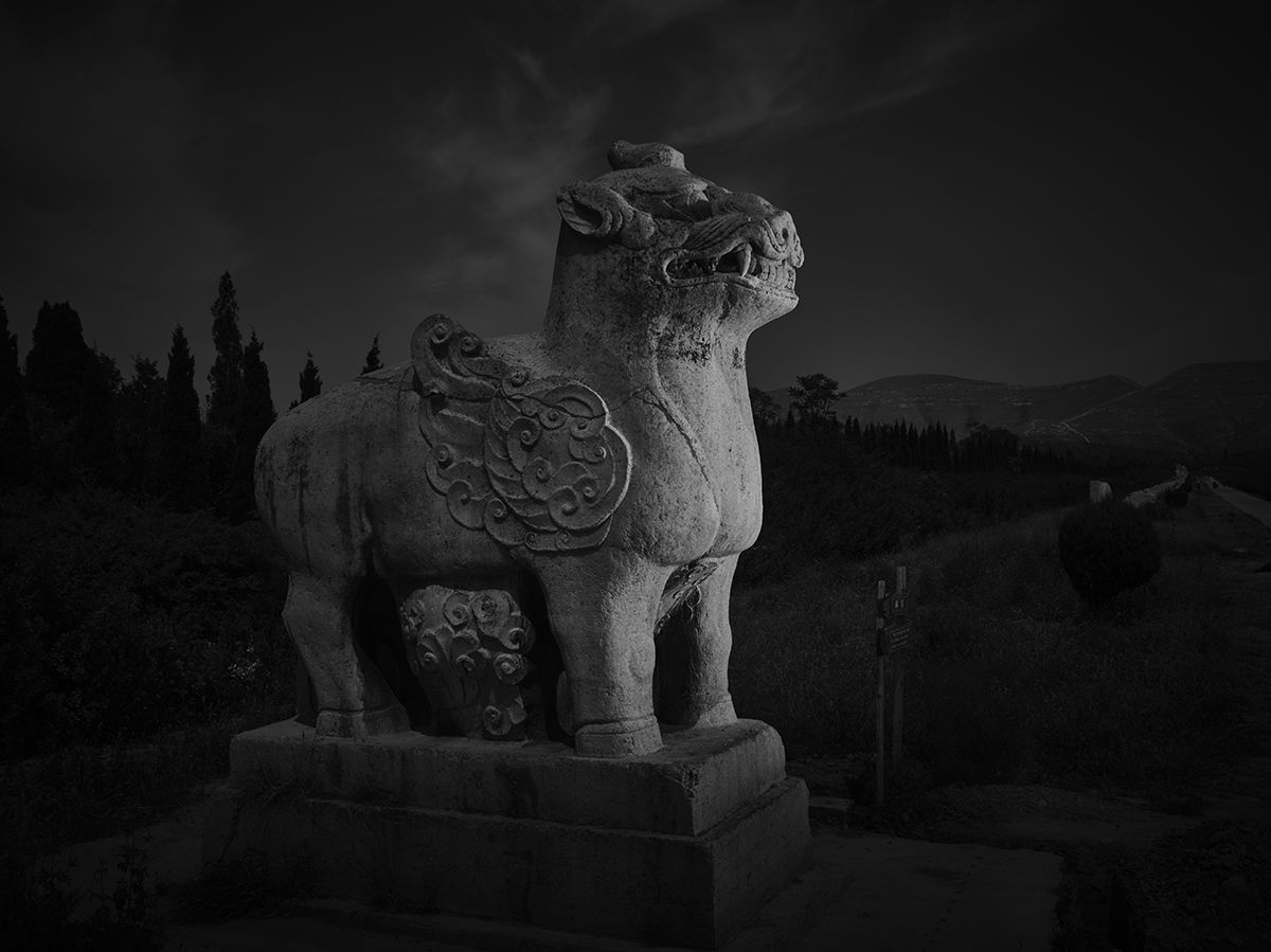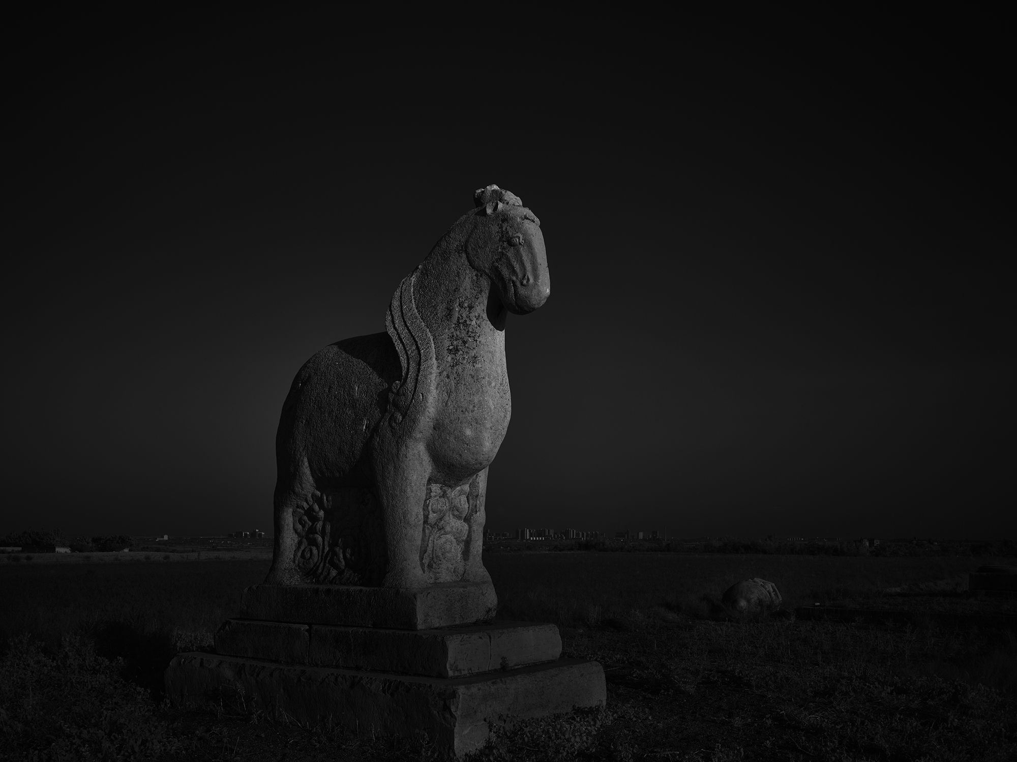 The photo portrays the mysterious and monumental stone funerary statues that accompany early Chinese emperors’ tombs. Dating from the Qin, Han, Tang, Song, and Ming dynasties, the rite of the Stone Statue epitomizes the power, wealth and sophistication of ancient kingdoms whose grandiose relics are reminders of China’s disappearing heritage.