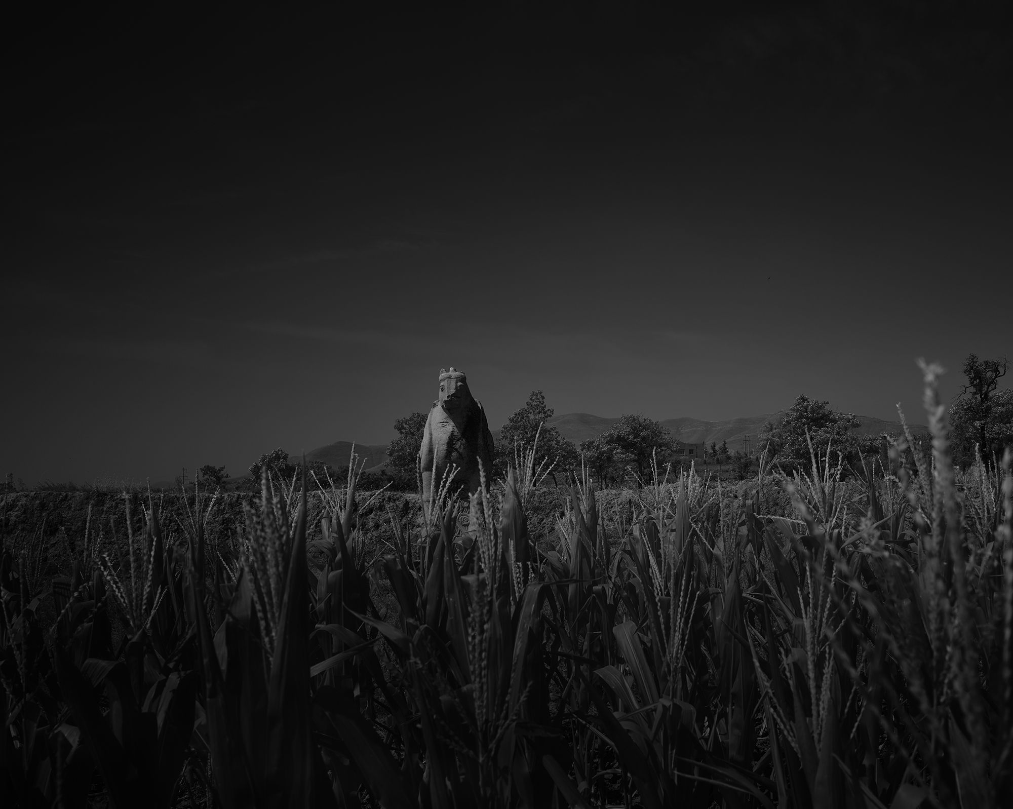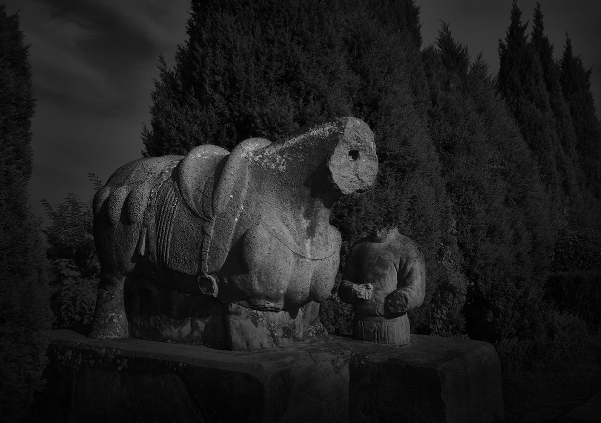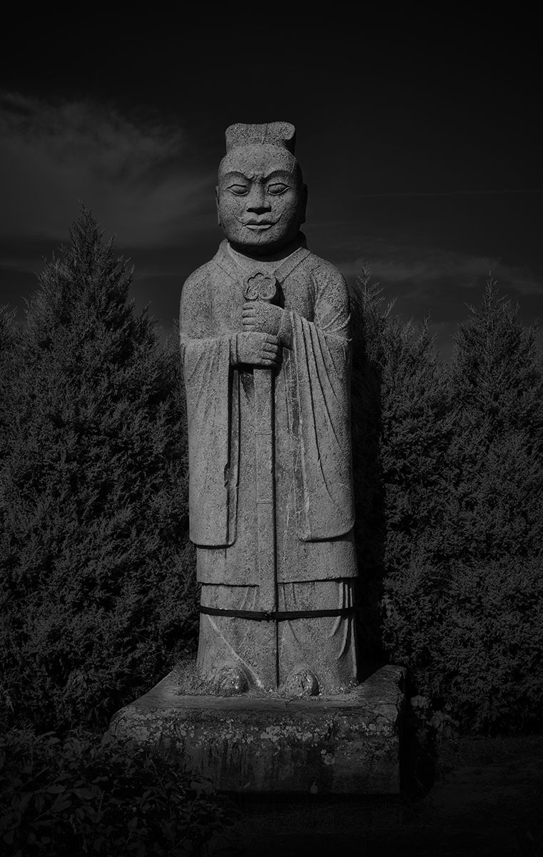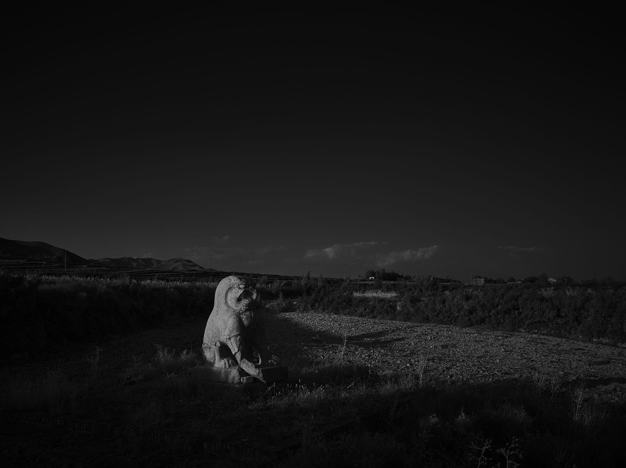 The photo portrays the mysterious and monumental stone funerary statues that accompany early Chinese emperors’ tombs. Dating from the Qin, Han, Tang, Song, and Ming dynasties, the rite of the Stone Statue epitomizes the power, wealth and sophistication of ancient kingdoms whose grandiose relics are reminders of China’s disappearing heritage.
