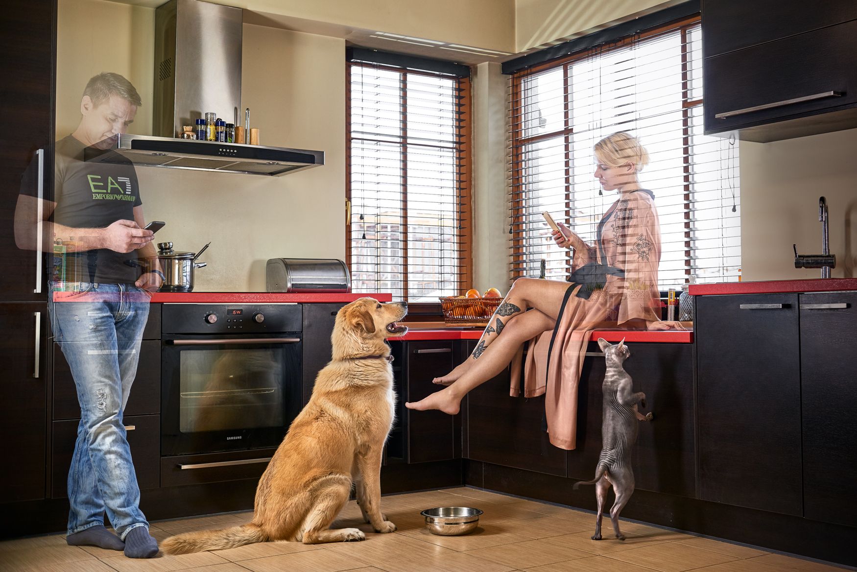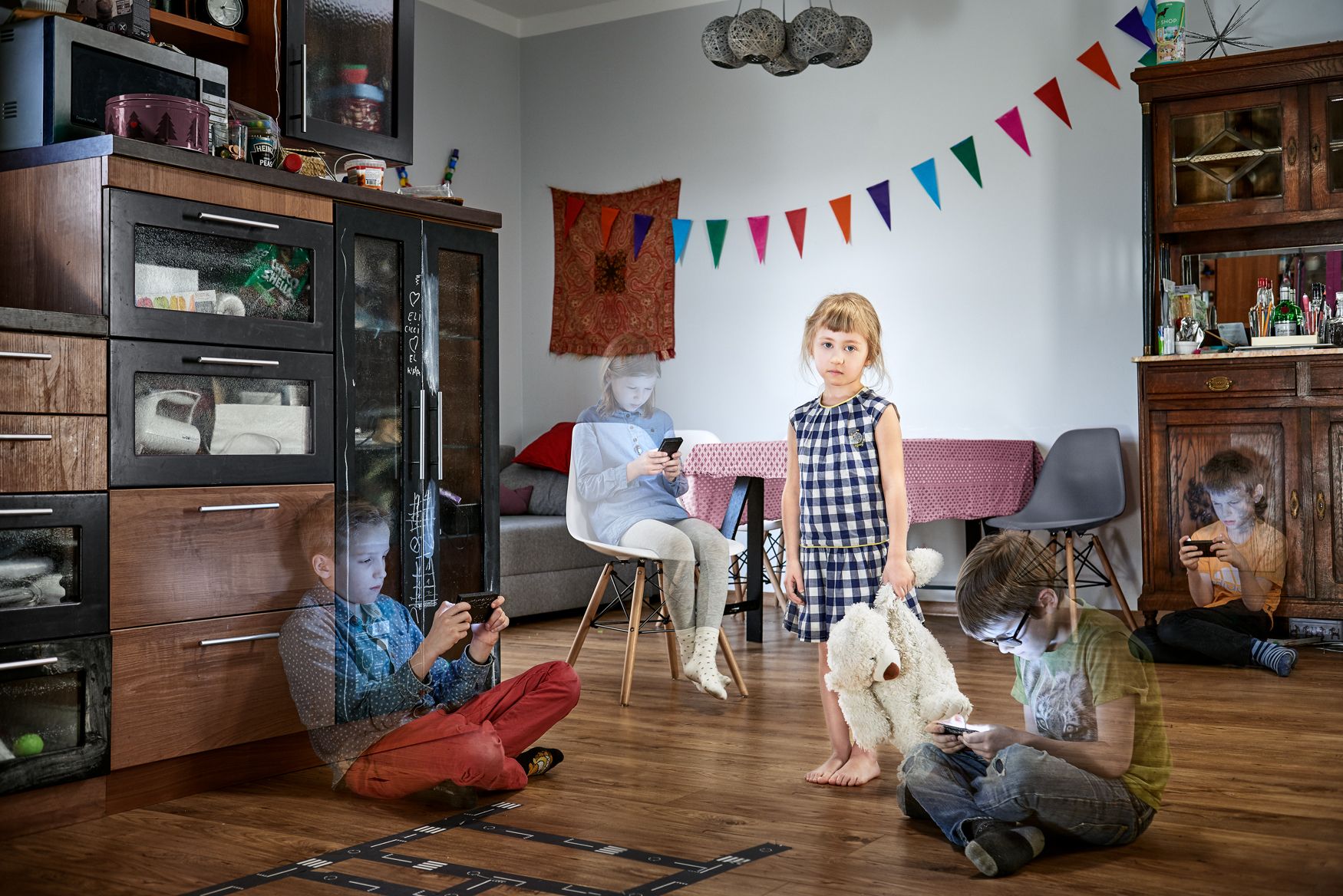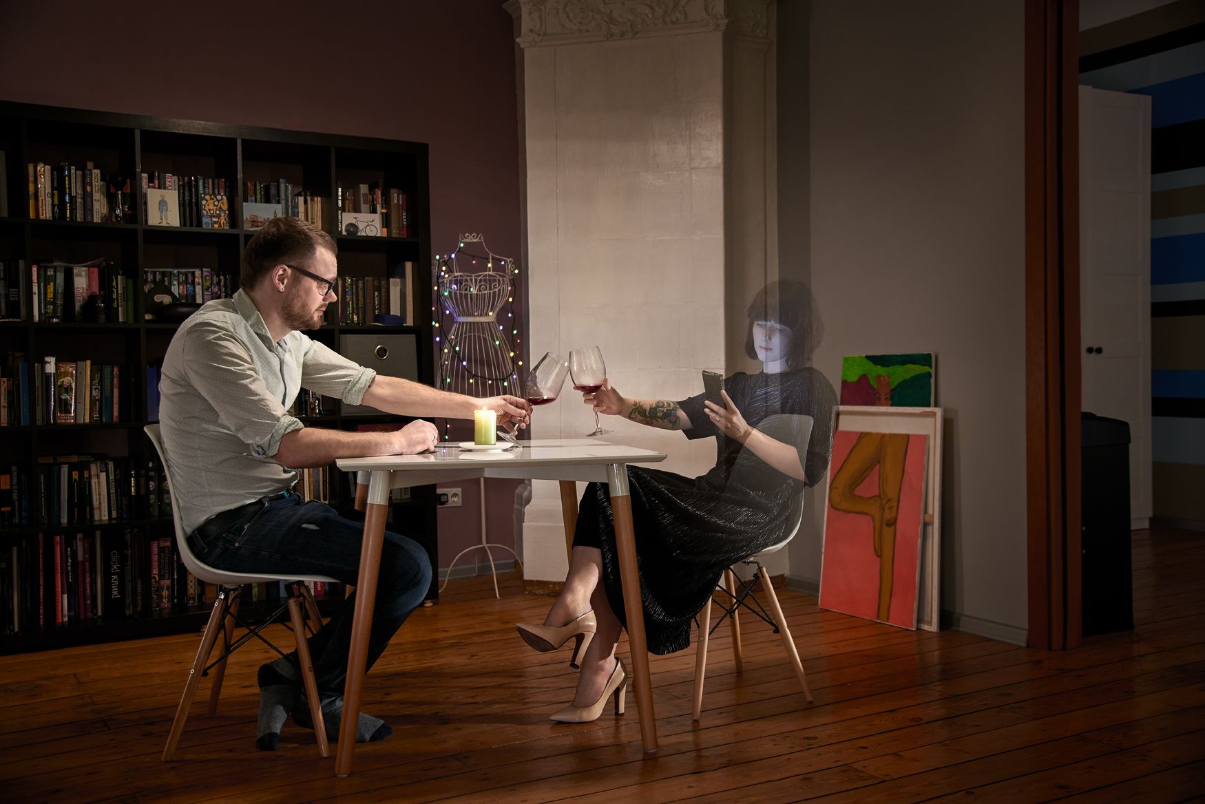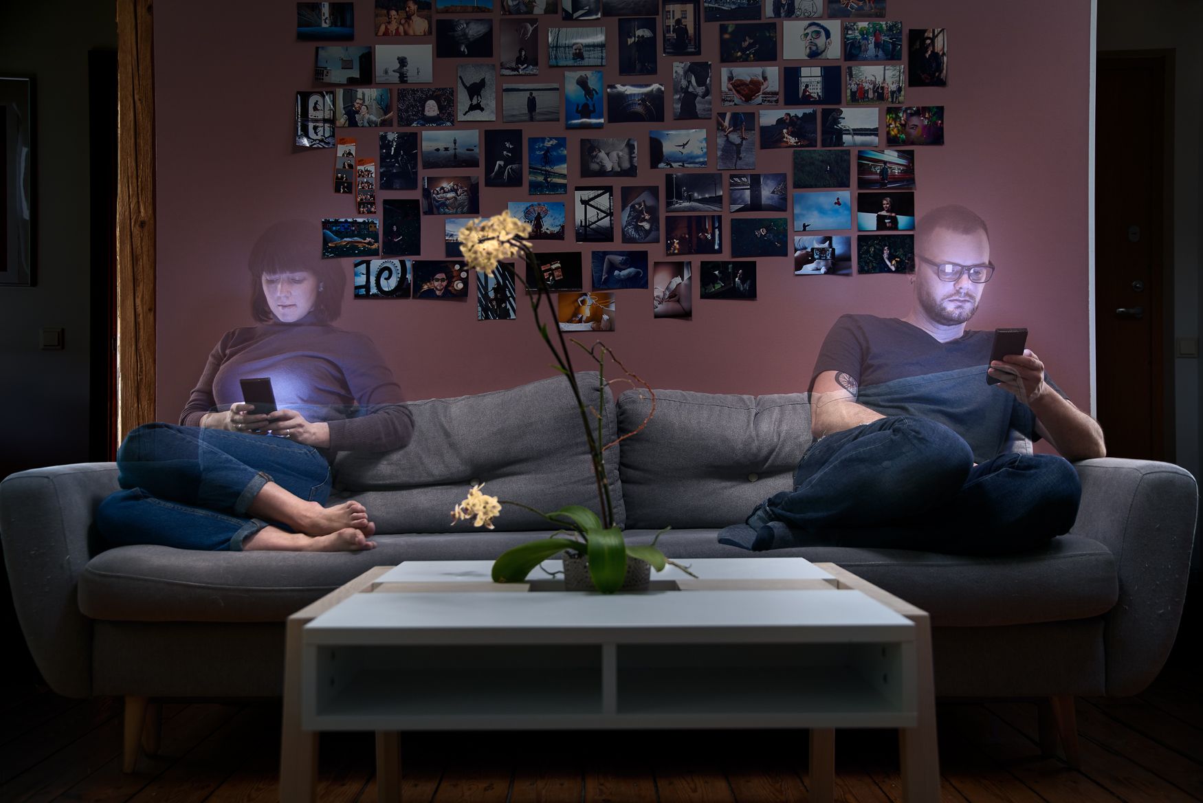 The main goal of this project is to illustrate how we keep disconnecting from the reality around us at any given moment and becoming engaged in something that is perhaps real but not that important and relevant right now; How we just by the nature of habit choose more often to look at the screen instead of looking around, to text someone instead of talking to a person sitting in front of us; How our mind becomes global in the sense that we can engage in a conversation with people we barely know and at the same time ignore someone very close and real.