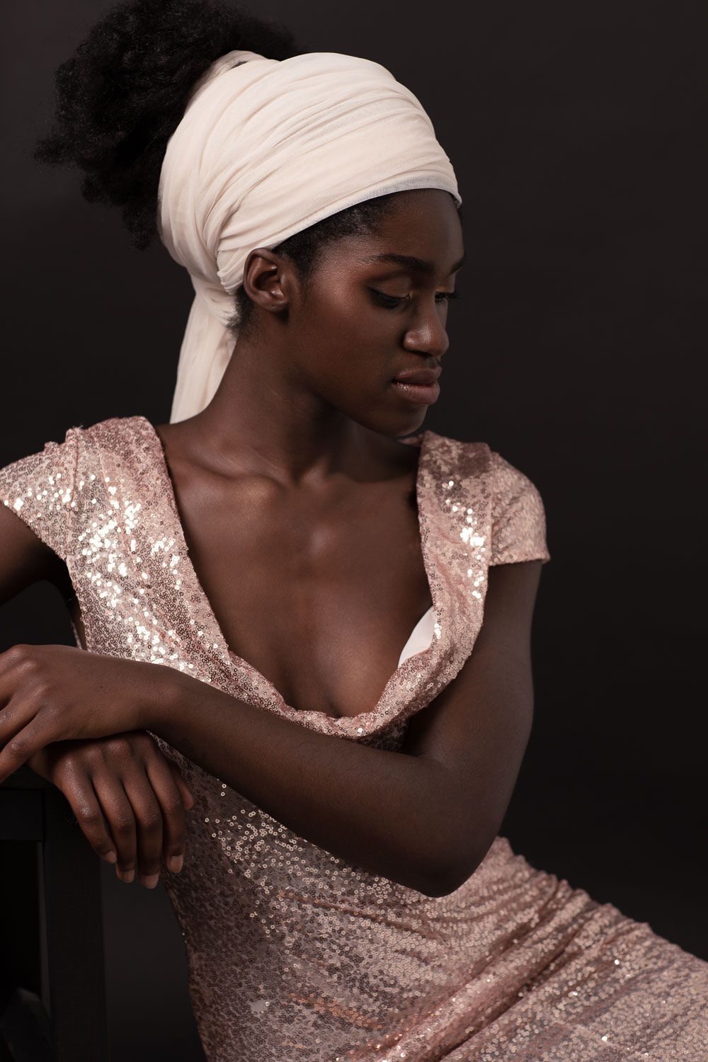 A renaissance inspired portrait of a young woman lost in her own thoughts celebrating her beauty