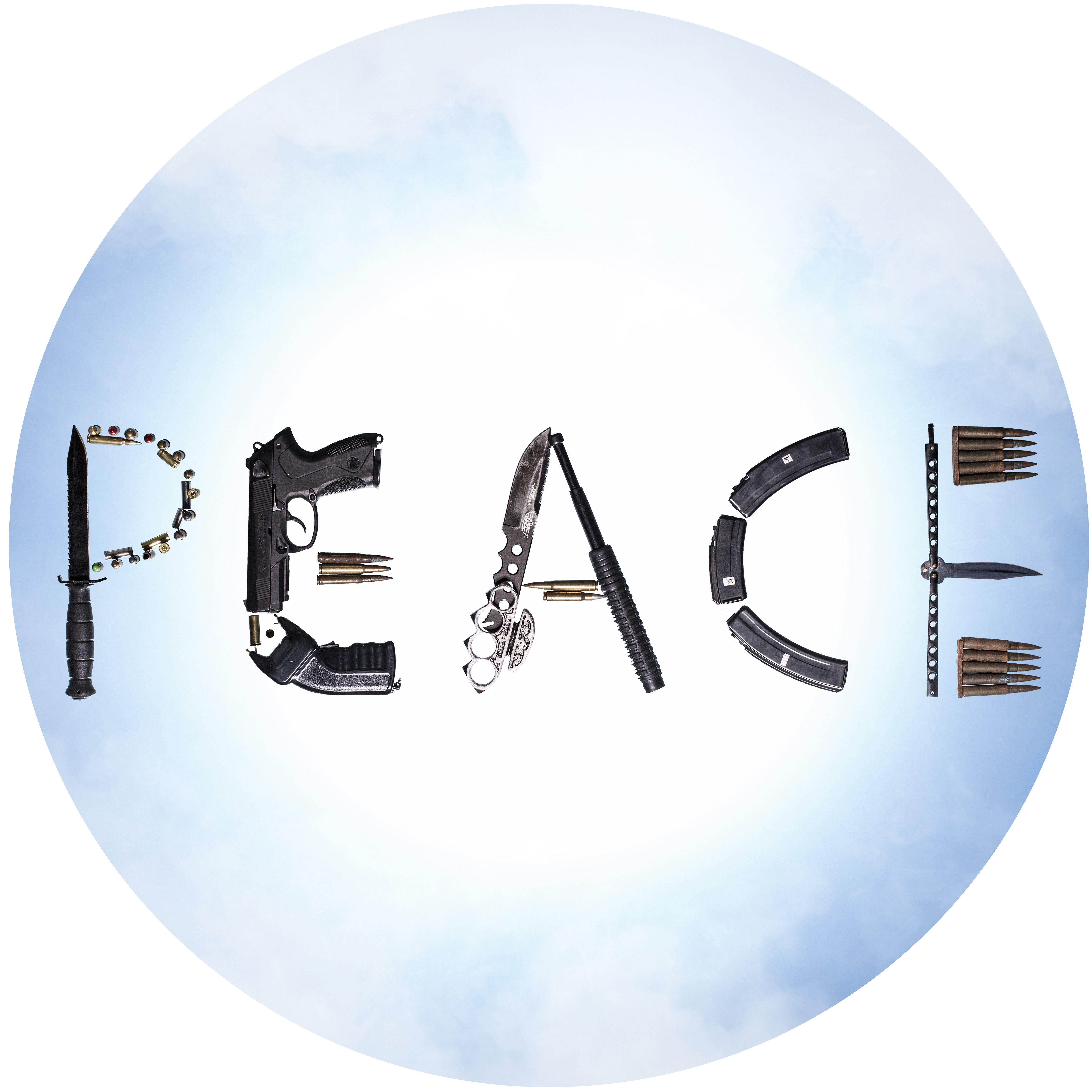 PEACE from circular minimalistic still lifes series WORDS. The author constructed words from items, which evoked him opposite meaning of the word.